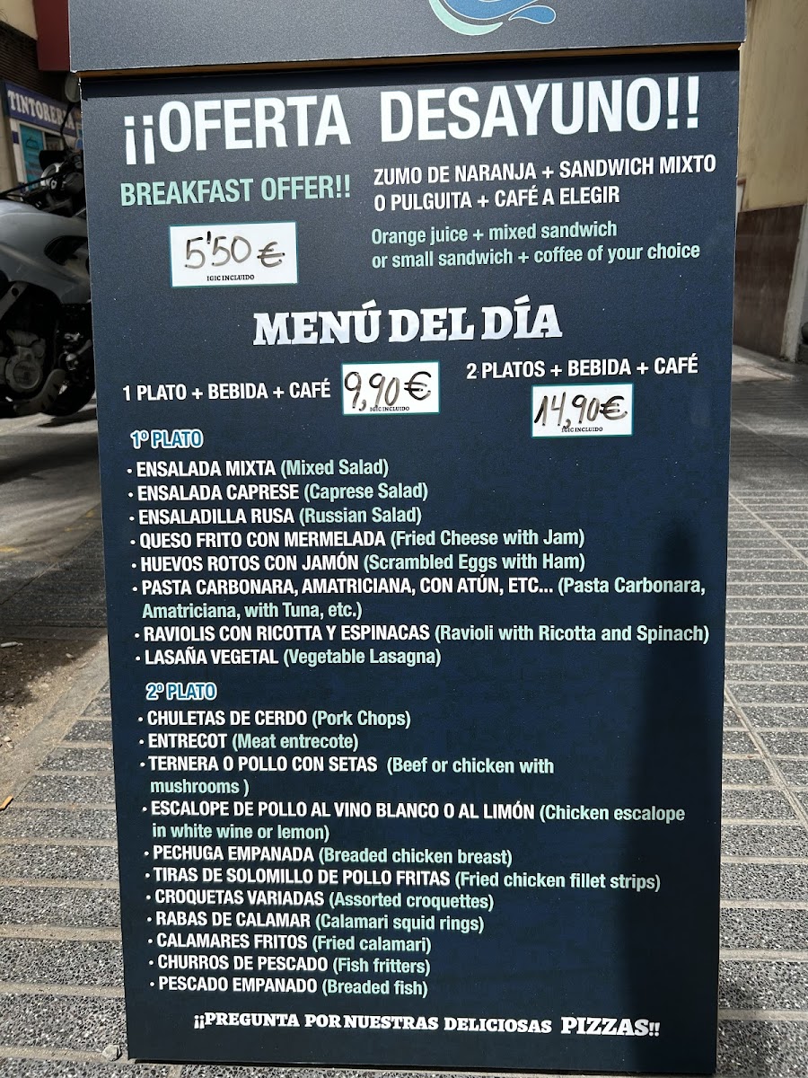 The menu showcases a vibrant mix of Italian and Canarian specialties, each dish carefully crafted to highlight the freshest ingredients. Customers rave about the exceptional coffee and the remarkable value offered, making it a must-visit for both locals and tourists alike. Popular offerings include delicious breakfasts and hearty lunches, made even better by the friendly service provided by the wonderful duo, Sonia and Pepe.